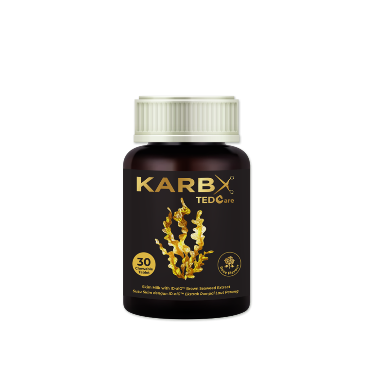 KarbX, crafted by TEDCare, present chewable tablets with Id-aLG™ and rose flavor. With up to 60% carb and fat blocking capabilities. It aids in reducing body fat and shaping.